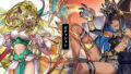 伐竜姫譚の星導の輝きは0.4×5の計2%、10枠目は5×5の計25%で星導覚醒キャラが引けるというワゴンセールのようなガチャだがAS実装待ちの素体4人と同時にセリエスASも狙えるので全員未所持なら検討してもいい。今後アルカディアキャラが増えればリンクアビリティを発動しやすくなるという将来性もなくはない。ただAS実装後にNSを使う機会が少なくなる可能性が高く星導覚醒状態で引いた意味が薄れてしまう懸念もある。ASが強ければ直引きすればいいじゃんと言われればそうである。だが0.8%だ。弱点看破(地)を使えるクチナワは地キャラとして十分強いので白磁ASがいるなら一緒に編成したい。ウツハラは迎撃とターン終了時攻撃で手数も多い。メルピピアは火力はないがサポートキャラとして使いやすく開幕MP消費0が周回で便利。ただしMP0とブレイクも付与できるねここ様がいるなら里でお留守番だ。器用貧乏のサザンカは太もも周りは至高だがASでは蓄積周りをどうにかして欲しい。