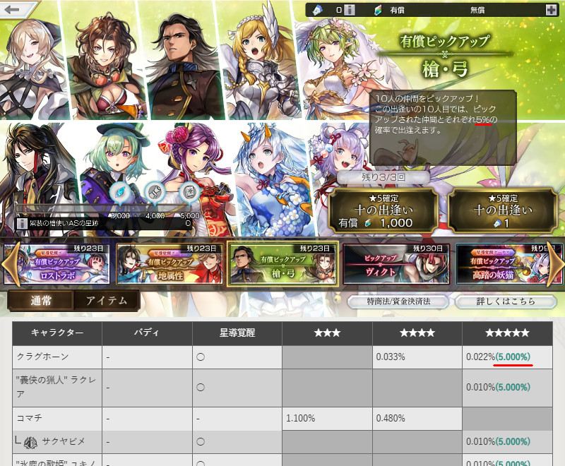 「でも周年で石が配られるからそこまで貯めなくてもいいでしょ」と思うかもしれないがこれは周年のCD(CountDown)ガチャだ。そう、つまり周年が始まる前にCDガチャは終わってしまうので事前に石を貯めておく必要があるのだ。課金者の場合もお得セール時にあらかじめ多めに購入しておくのがいいだろう。