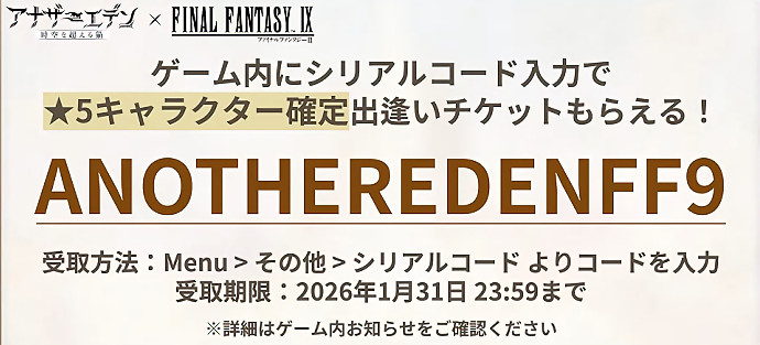 FFIXコラボ記念シリアルコード入力方法・期限 ★5チケキャラ一覧