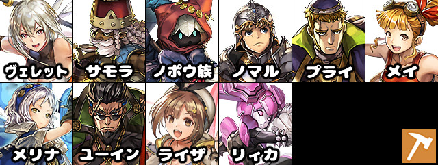 採掘はヴェレット、サモラ、ノポウ族、ノマル、プライ、メイ、メリナ、ユーイン、ライザ(協奏配布)、リィカ。