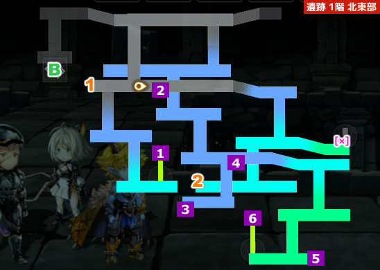 ハシゴをかければ2ヵ所で採集して左側と右側を行ったり来たりしてマップ切替できるが、片側でマップ切替するのと数秒程度しか差がないのでそこまで劇的な変化はない。ただ右下ハシゴ側の山岳とのマップ切替時に敵出現距離がリセットされるので材料が大量に必要な場合はハシゴを作った方が効率がいい。