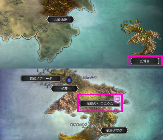 ※右の魔獣ソーフォに話しかけると復興イベントが始まるが、攻略には不要なので話しかけた後は放置でいい。左にいる魔獣の子供はアイテムとメダルを交換してくれるがこれも放置でいい。