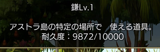 耐久度は上部の道具アイコンをタップすることで確認できる。耐久度が0になると使用不可になり、敵がドロップするアストラシャードと交換できるリペアキットを使って修復する必要がでてくる。リペアキットは3時間毎に村の住人から3個ずつ貰うこともできる。