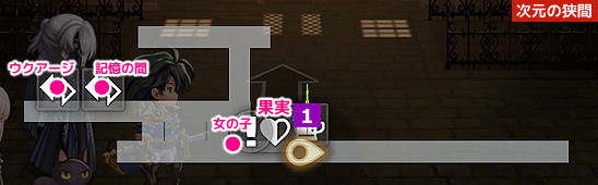 記憶の間ではストーリーなどを進める上で消滅してしまったダンジョンなどに再び行くことができる。宝箱などを回収し忘れた場合はここで回収できる。