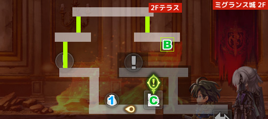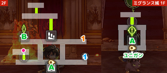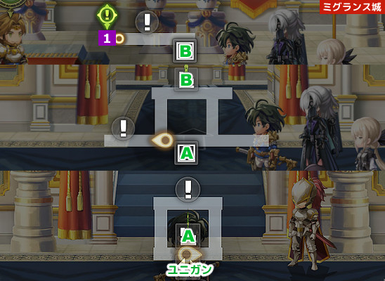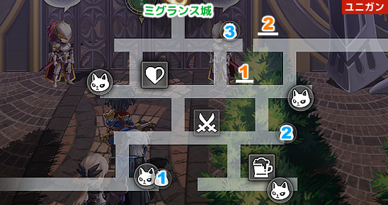 勝利後、12章クリア。マップ移動でユニガンに戻り、上からミグランス城へ
