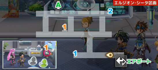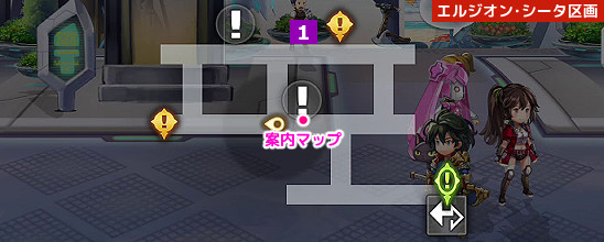 エルジオン:すぐ右の[!]案内板マップでシータ区画ゼノ・プリズマ前に移動。