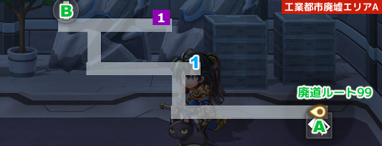 MAP移動でエルジオンへ。左に進み廃道ルート99へ。