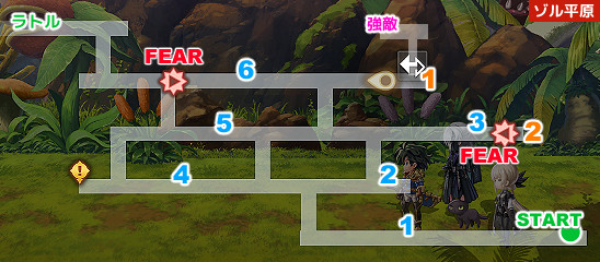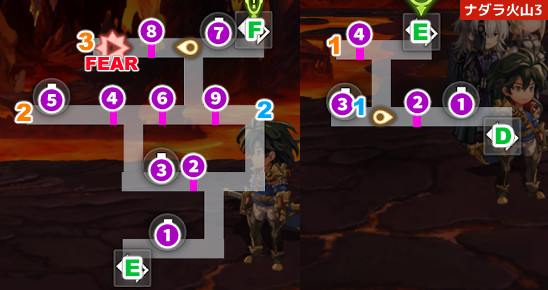 ナダラ火山2:[C]から[D]へ。宝[1]はFEARが端に寄った時に移動すれば取れる。