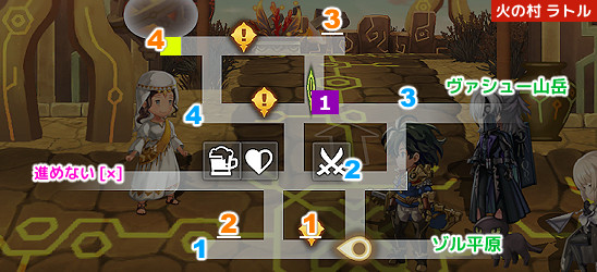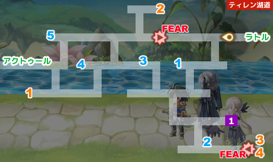 アクトゥール:1でイベント。MAP移動でラトルに行き、左から出てティレン湖道へ。