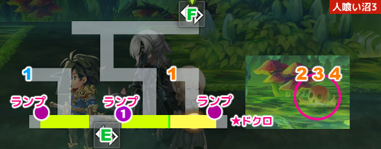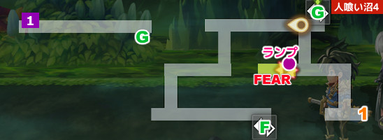 人喰い沼4:右上[G]に進んで1でBOSS戦。ランプはFEARと戦えるだけなので放置でもいい。