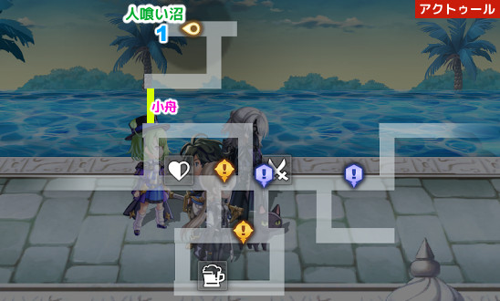戦闘勝利後、第9章クリア。アクトゥールの北側に小舟で渡れるようになり、人喰い沼の最終マップへ移動できる。