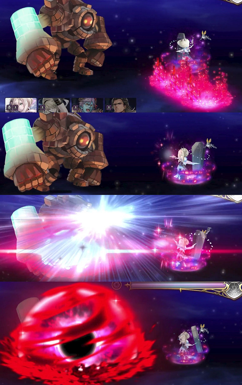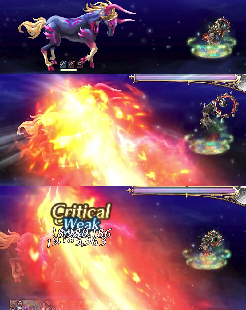 敵全 エレメンタルブレイク[水]5蓄積+水[斬]バリア貫通 攻撃(極大20倍)を3回実行エレメンタルブレイク…蓄積回数分だけ対象属性のダメージ2倍
