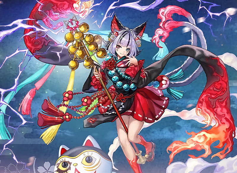 敵全雷[魔] 攻撃(極大2倍)+気絶+耐久精神50%↓(5t)陽と陰の珠蓄積数に応じて威力最大8倍 - SB時 猫又陰陽撃 星導 (95)