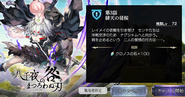 難易度は報酬の変化がないので何でもいい。敵のHPは2話と同じなのでそこそこプレイしていても[VETERAN~EXPERT]までにするのが無難。MASTERだとザコ敵でも3900万を超えるのでティラミスなどでのワンパンは不可能。呪顎はHPがやや多い(ザコ敵下段)。