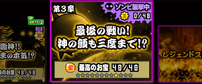 ついに宇宙編3章にゾンビ襲来ステージが追加されたにゃ。これで統率力が逆カバ3回分の1200になるにゃ?頑張ってクリアするにゃ!と思ったらいきなりN77星雲で敗北したにゃ……。あんなにメタル出してくるとは思わなかったにゃ。ヘビィメタルにゃ。というわけで動画廻りをして各ステージの大雑把なメモを取ることにしたにゃ。アプデで不具合解消されたから負けそうになったらタスキルできるようになったにゃ。