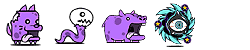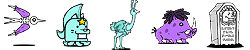 ワーニック(エ)、ワニボン(ゾ/攻↓)、墓手太郎(ゾ/ふっとばす)、チンアナ5兄弟(エ/ワープ)、サイバーX(エ)