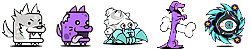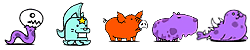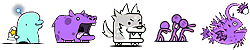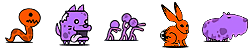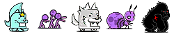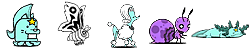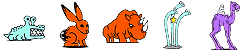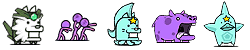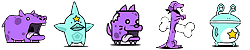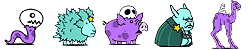 ワニボン(ゾ/攻↓)、プドール夫人(エ)、ルーパールーパー(エ/波動/バリア)、トロリンチョ(ゾ/ワープ)、マナブくん(エ/バリア)