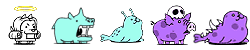 メタルわんこ(メ)、ゾンビワン(ゾ)、エリートエイリワン(エ/ワープ)、メタルカバちゃん(メ)、ダッフンデッド(ゾ/停止)