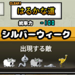 ファイナルギガグランド神さま(白/波動/ワープ)、テバムラサキホネツバメ(ゾ/浮/毒撃)、野生のわんこ(白/超獣)、スター・ペン(エ/ワープ)、ゴリ・ンジュ(ゾ)、ダッフンデッド(ゾ/停止)、プドール夫人(エ) すぐに衝撃波で神さま、ちょっとしてホネツバ飛んでくるにゃ。神さまの射程は800あって攻撃速度は遅いけど攻撃力が高いから体力低い遠方キャラはみんなすぐにやられるにゃ。やったにゃ!でも実は神さまの一撃目の攻撃を受けてワープさせられれば三撃目の強めの攻撃には当たらない、だからあえて火力キャラにはワープ無効キャラを使わないっていう戦略もあるらしいにゃ。でもそうすると今度は取り巻きに押し込まれそうで怖いにゃ。クリアしたら統率1200になって神さまの本能ももらえるにゃ。 -